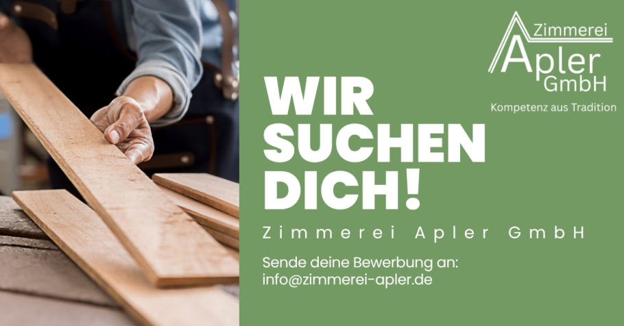 Klingt gut? Dann melde dich einfach, gerne persönlich oder mit einer Bewerbung an info@zimmerei-apler.de